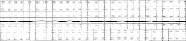 You are examining a 79 year old man who presents to the Emergency Department with a 1 week history of productive cough and fever. He is tachycardic, hypotensive and hypoxic. You suspect sepsis secondary to a community acquired pneumonia. Whilst examining him he becomes unresponsive. You cannot feel a central pulse. You commence CPR and bag valve mask ventilation whilst a nurse attaches the nearby defibrillator. You immediately pause CPR for a rhythm check. What rhythm is shown?